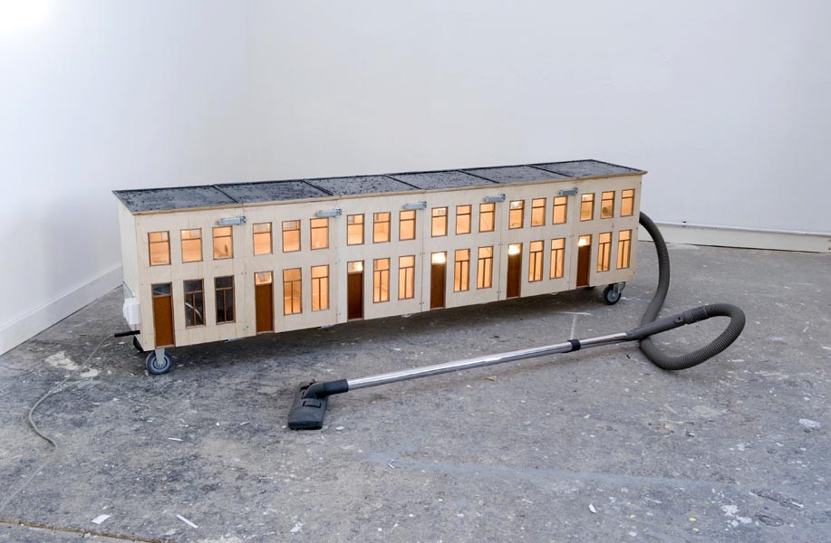 Een straatje van zes rijtjeshuizen die als stofzuiger dienst doen / A vacuum cleaner consisting of six interconnected terraced houses.