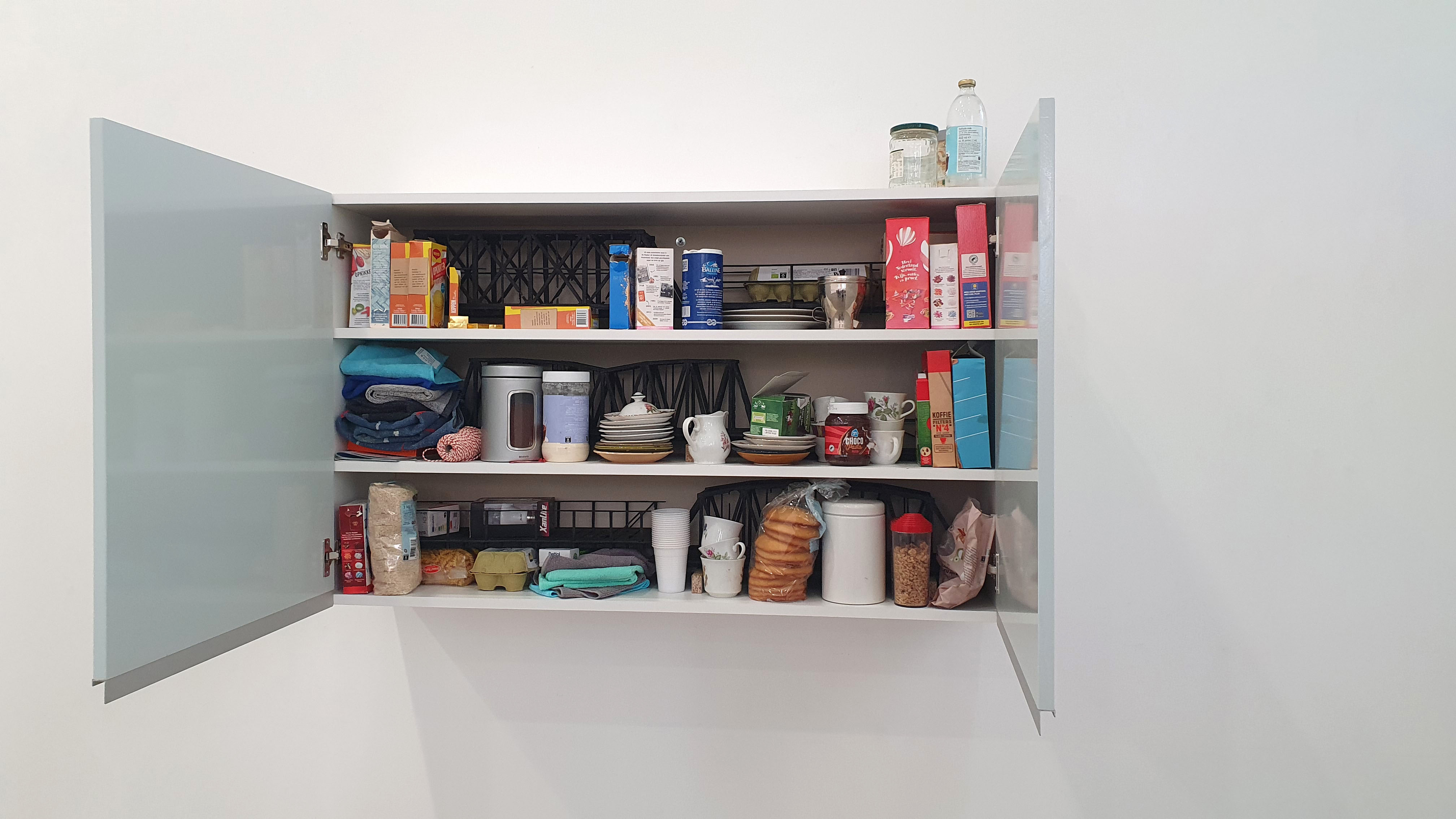 The work consists of an inconspicuous kitchen cupboard containing the usual foodstuffs and utensils. Carelessly and somewhat in the background there are also some miniatures of burned bridges. These represent the important decisions and changes in direction you make during your life. But although I often think that these decisions are final and life-changing, I regularly catch myself following the old patterns. So it turns out it's all very relative.
